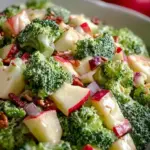 Your Apple Broccoli Salad tastes best fresh, but you can refrigerate leftovers in an airtight container for up to three days. The dressing will become more flavorful over time. If you’d like to reheat any components, warm broccoli in the microwave gently until just heated through; however, avoid reheating the entire salad to preserve its texture and freshness. Do not freeze the salad, as the mayonnaise and fresh ingredients won’t maintain their quality once thawed.