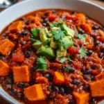 As you dive into each spoonful, the sweet potatoes provide a delightful creaminess, balancing beautifully with the earthy black beans and juicy diced tomatoes. Every bite hits your palate with a delightful mix of textures – a tender melding of soft vegetables, contrasted by the slight crunch of fresh toppings. You’ll relish the spicy warmth that lingers just enough to remind you of cozy nights gathered around the fire, enjoying good conversations with friends and family. No matter the occasion, this dish has a way of making you feel at home.