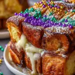 Imagine waking up to the warm aroma of vanilla and cinnamon wafting through your kitchen, where the morning sunlight dances with anticipation. The rich scent of brioche baked to golden perfection envelops the air, promising a slice of indulgence. King Cake French Toast Bake transforms a classic weekend breakfast into a festival of flavors and textures, captivating the senses with every bite. Each piece brings together the comforting softness of bread soaked in a creamy custard, with hidden surprises of sweet cream cheese swirls, all drizzled with buttery icing that melts into a kaleidoscope of vibrant sanding sugars. It’s a feast that beckons you to gather around the table, creating memories that linger long after the last crumb has disappeared.