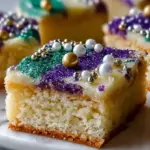 Deliciously festive King Cake Sugar Cookie Bars that embody the spirit of celebration with their buttery sweetness and vibrant colors.
