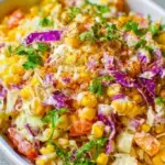 Colorful Mexican corn slaw with fresh ingredients in a bowl.