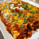 Each bite tells a story. Soft and tender tortillas cradle a vibrant medley of sweet potatoes, hearty black beans, and sweet corn, infused with bold spices like cumin and chili powder. The dish is adorned with a luscious layer of gooey cheese that bubbles and blankets your enchiladas in cheesy comfort. Every forkful melts in your mouth, delivering a delightful balance of textures—from the tenderness of the filling to the slight crispness of the tortilla edges. You’ll find the experience heavenly, a true celebration of plant-based goodness that reminds you that vegetarian meals can be indulgent and mouthwatering.